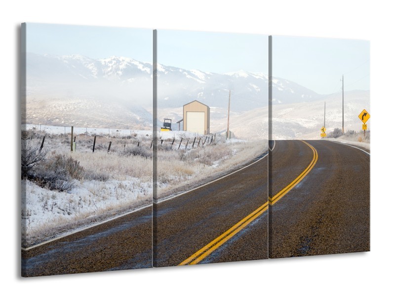 Canvas Schilderij Bergen, Winter | Bruin, Grijs, Wit | 165x100cm 3Luik