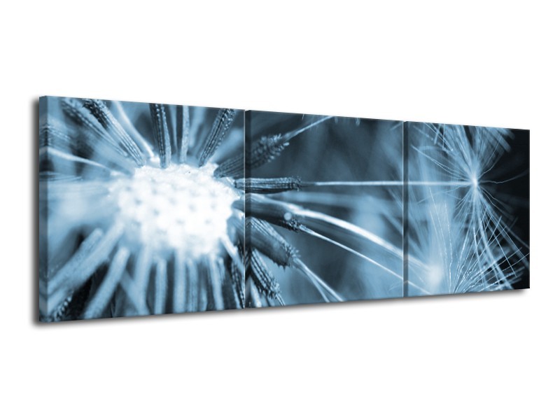 Canvas Schilderij Bloem | Blauw | 120x40cm 3Luik