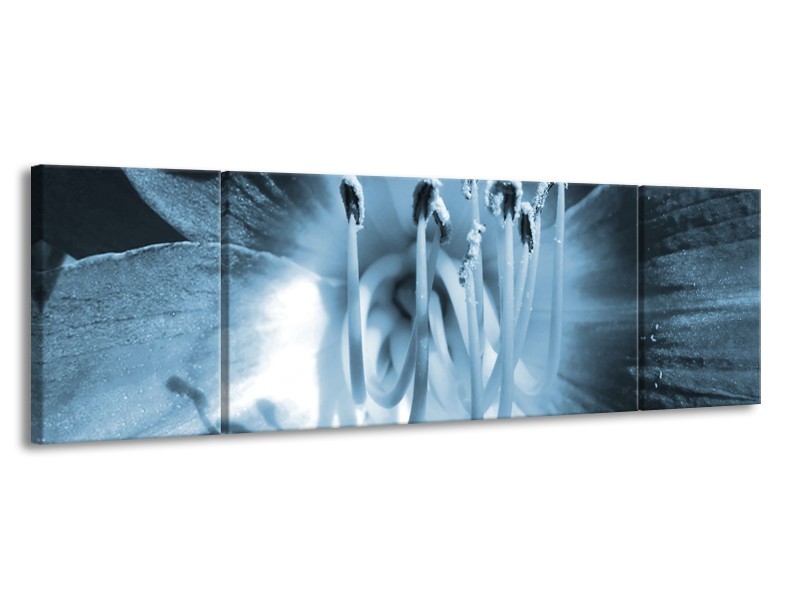 Canvas Schilderij Bloem | Blauw | 170x50cm 3Luik