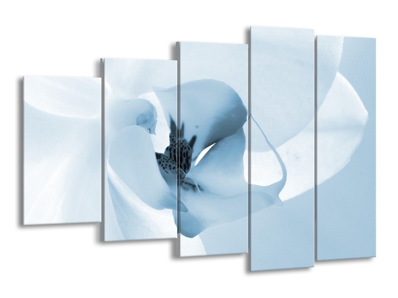 Canvas Schilderij Bloem | Blauw, Wit | 150x100cm 5Luik