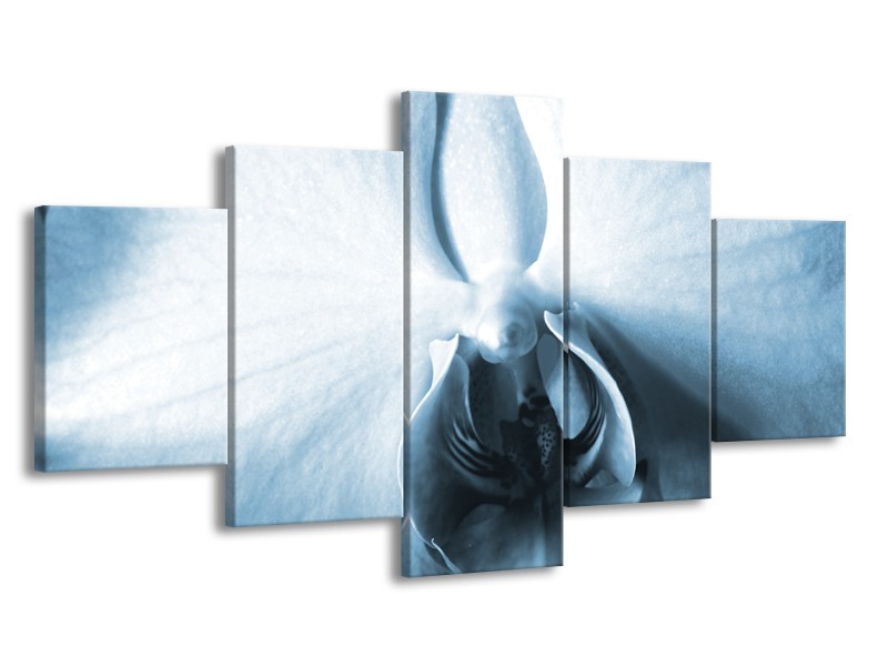 Canvas Schilderij Bloem | Blauw, Wit | 150x80cm 5Luik
