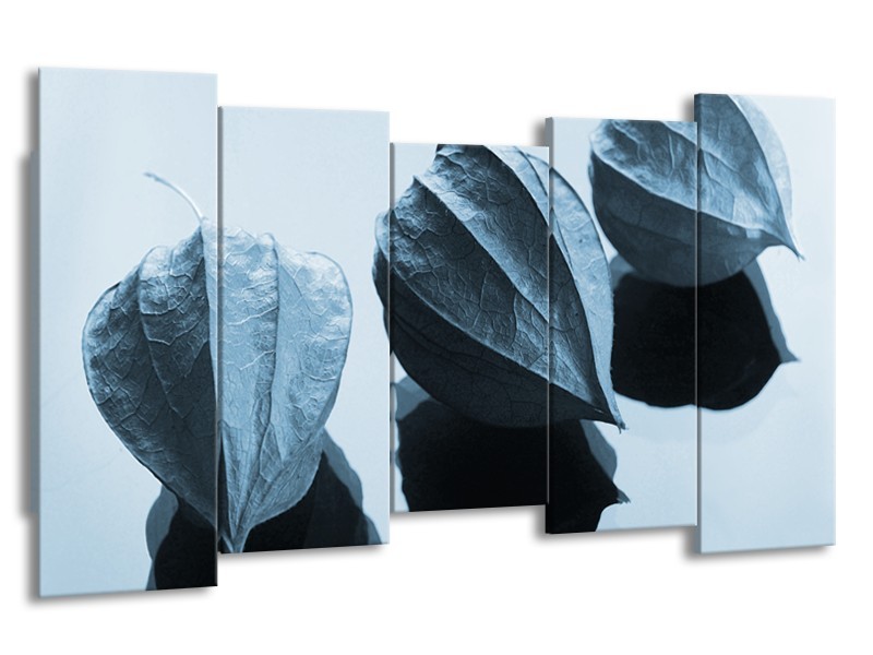 Canvas Schilderij Bloem | Blauw, Wit | 150x80cm 5Luik