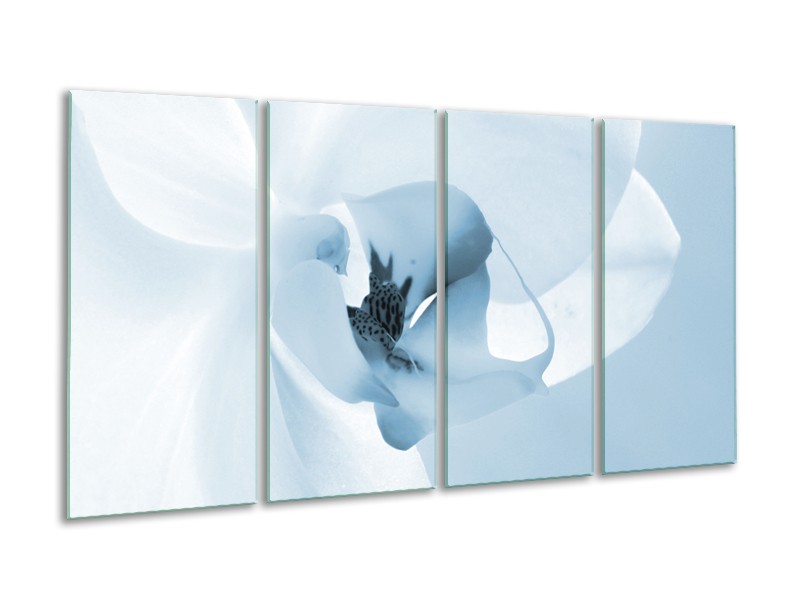 Canvas Schilderij Bloem | Blauw, Wit | 160x80cm 4Luik