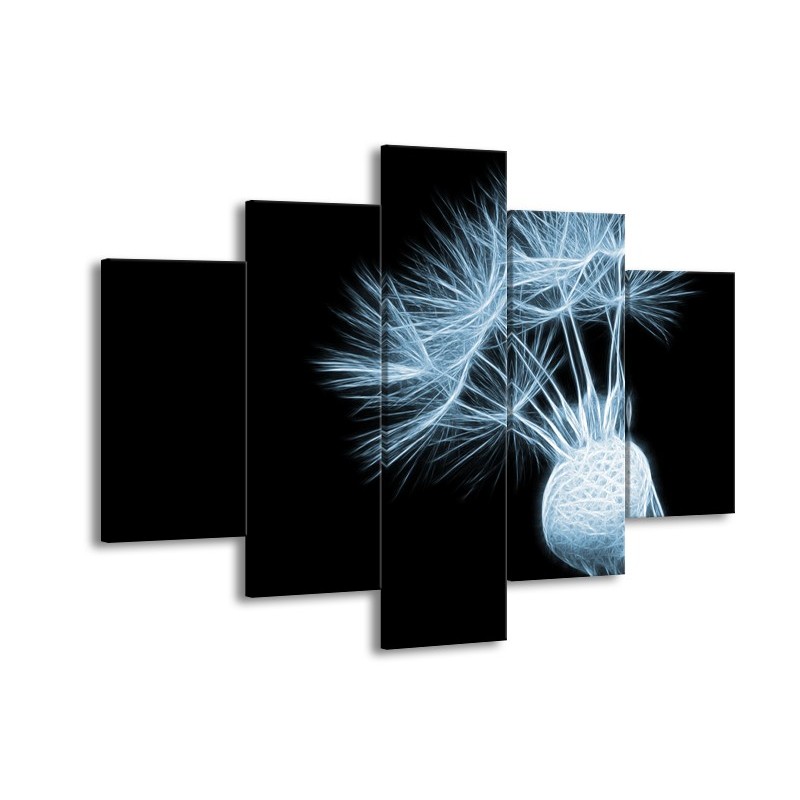 Canvas Schilderij Bloem | Blauw, Zwart | 150x105cm 5Luik
