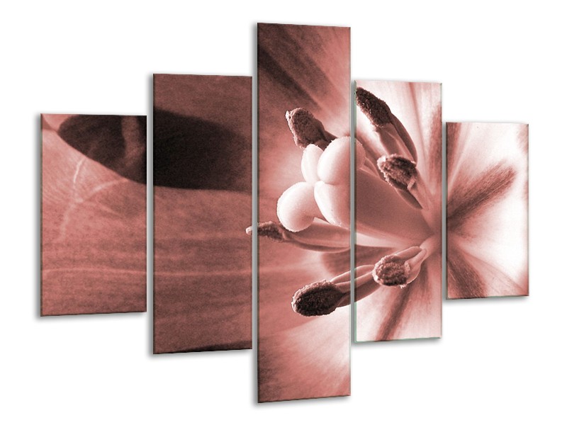 Canvas Schilderij Bloem | Bruin, Rood | 100x70cm 5Luik