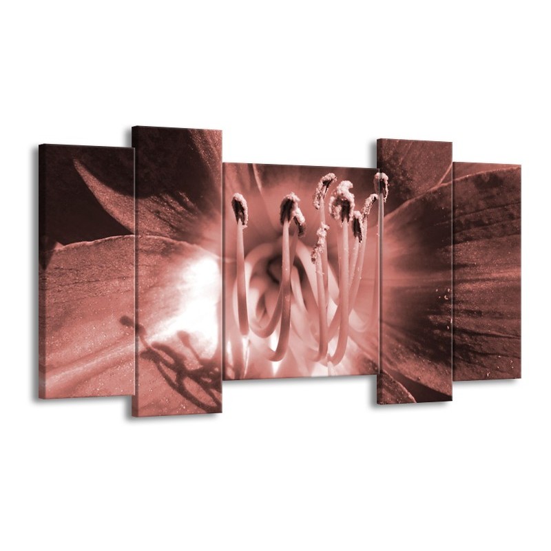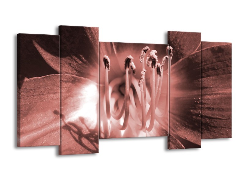 Canvas Schilderij Bloem | Bruin, Rood | 120x65cm 5Luik