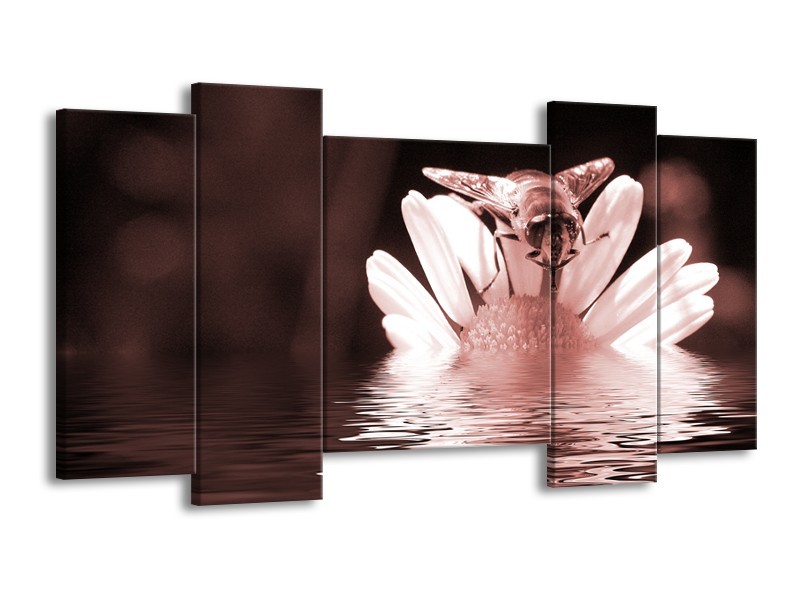 Canvas Schilderij Bloem | Bruin, Rood | 120x65cm 5Luik