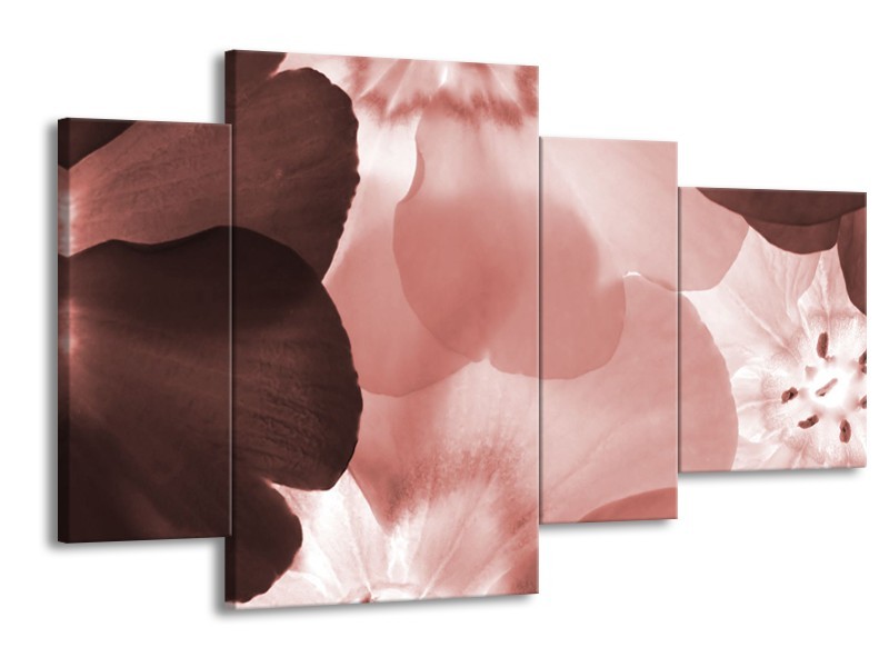 Canvas Schilderij Bloem | Bruin, Rood | 120x75cm 4Luik