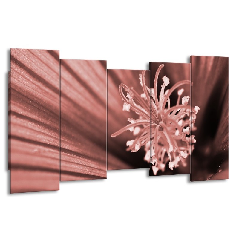 Canvas Schilderij Bloem | Bruin, Rood | 150x80cm 5Luik