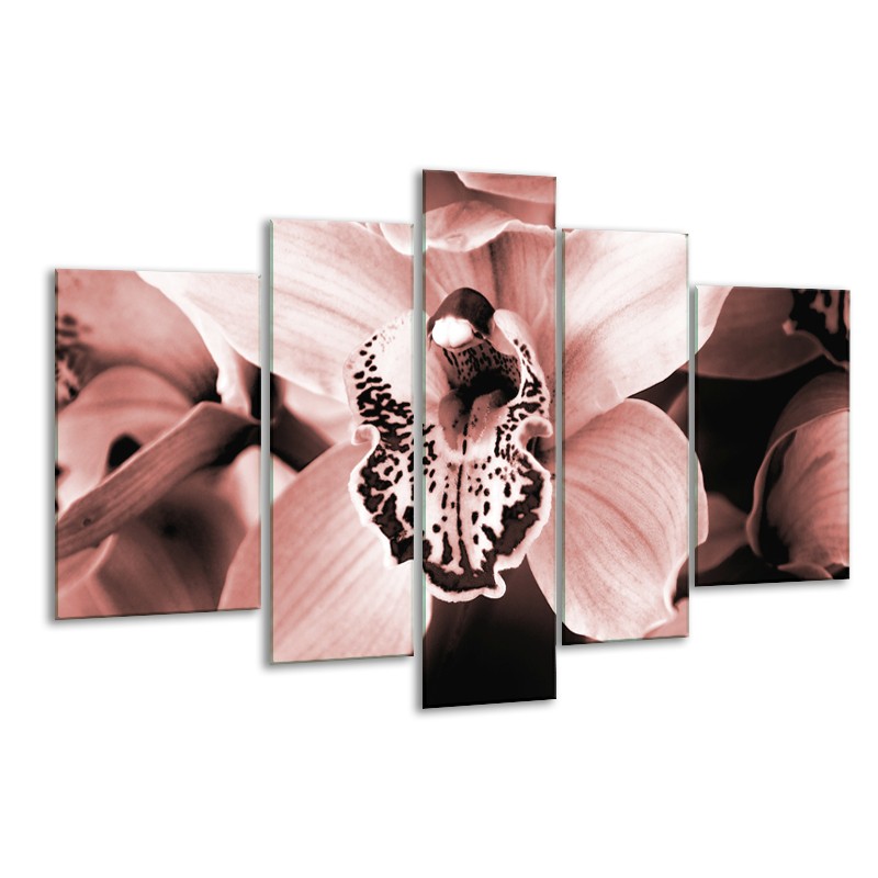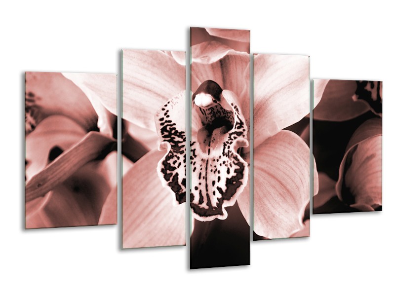 Canvas Schilderij Bloem | Bruin, Rood | 170x100cm 5Luik