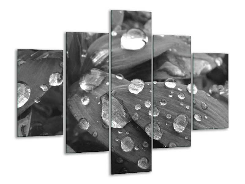 Canvas Schilderij Bloem, Druppel | Grijs, Zwart | 100x70cm 5Luik