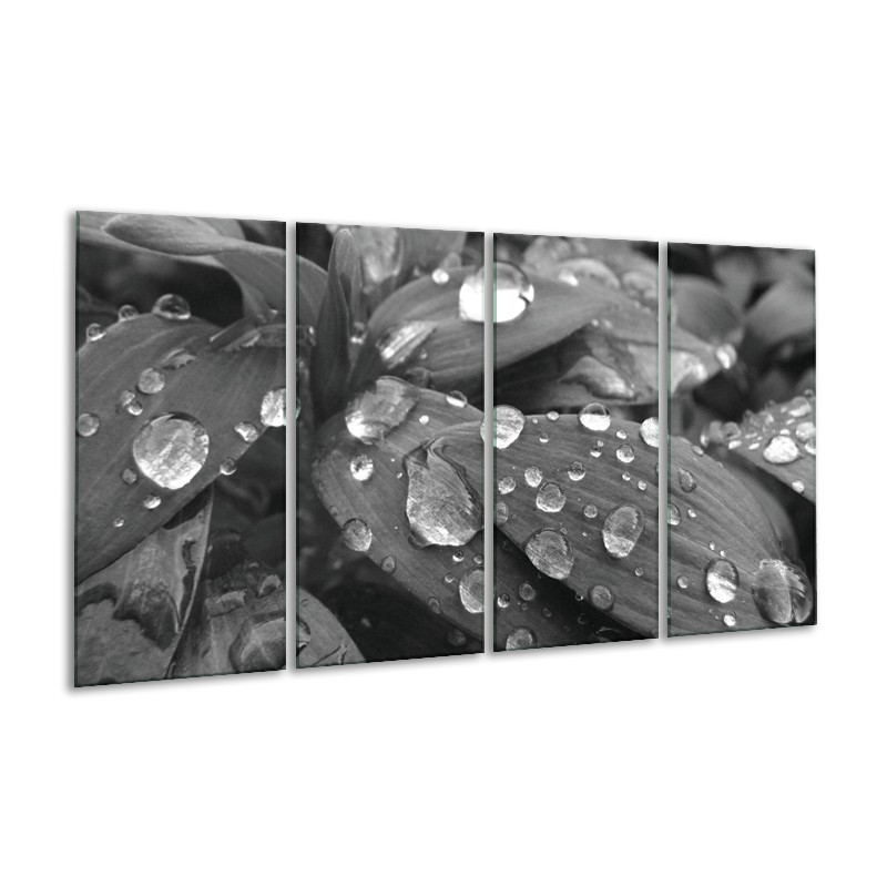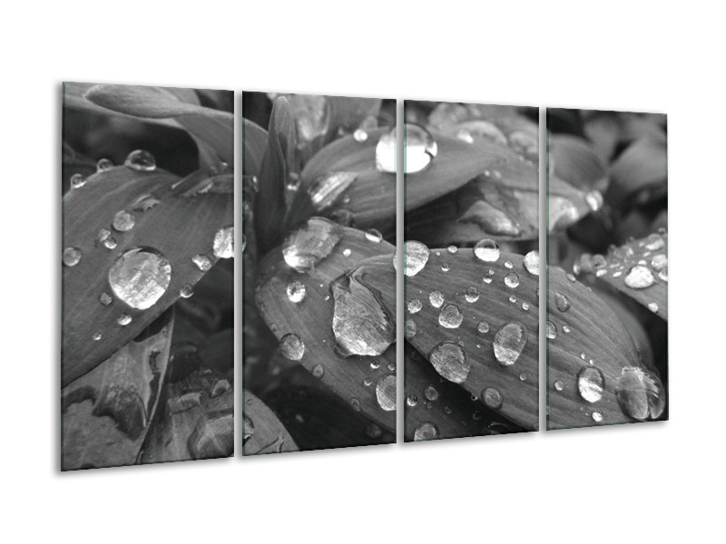 Canvas Schilderij Bloem, Druppel | Grijs, Zwart | 160x80cm 4Luik