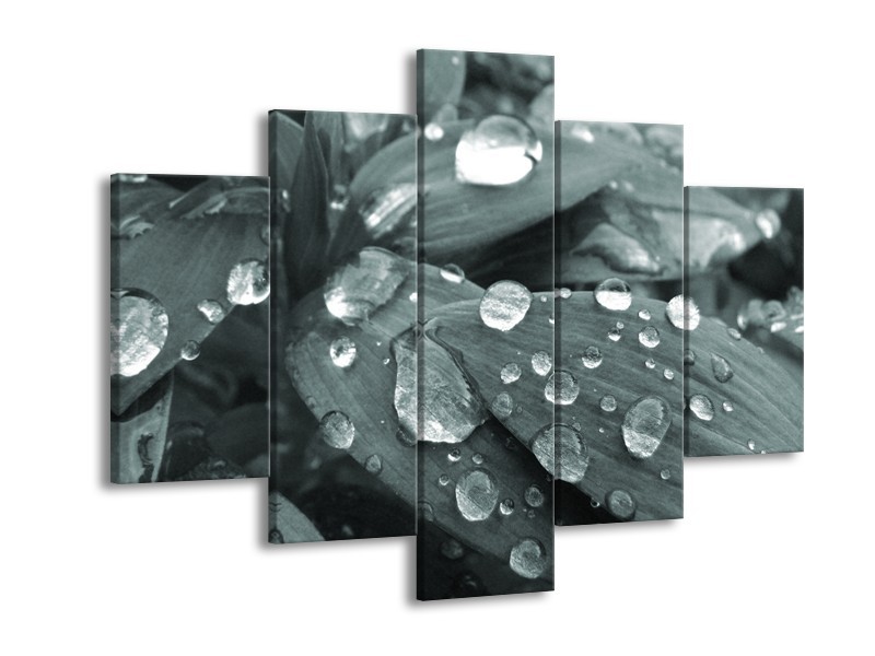 Canvas Schilderij Bloem, Druppel | Grijs, Zwart, Groen | 150x105cm 5Luik
