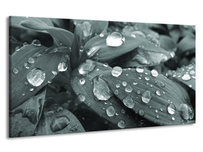 Canvas Schilderij Bloem, Druppel | Grijs, Zwart, Groen | 190x100cm 1Luik