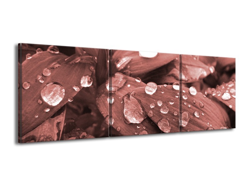 Canvas Schilderij Bloem, Druppel | Rood, Bruin | 150x50cm 3Luik