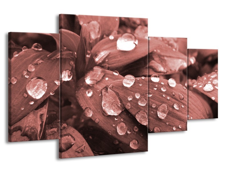 Canvas Schilderij Bloem, Druppel | Rood, Bruin | 160x90cm 4Luik