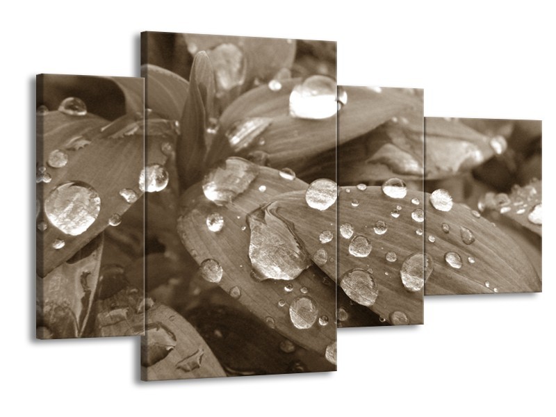 Canvas Schilderij Bloem, Druppel | Sepia | 120x75cm 4Luik