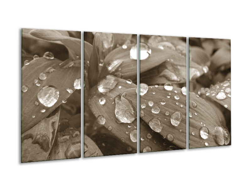 Canvas Schilderij Bloem, Druppel | Sepia | 160x80cm 4Luik