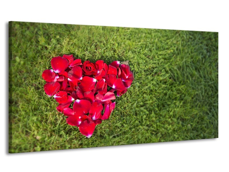 Canvas Schilderij Bloem, Gras | Rood, Groen, Roze | 170x90cm 1Luik