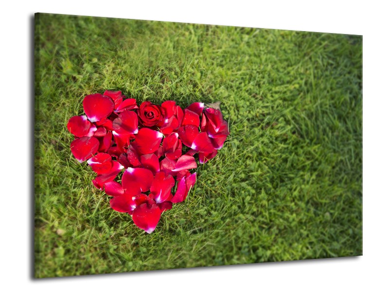 Canvas Schilderij Bloem, Gras | Rood, Groen, Roze | 70x50cm 1Luik