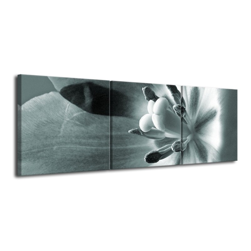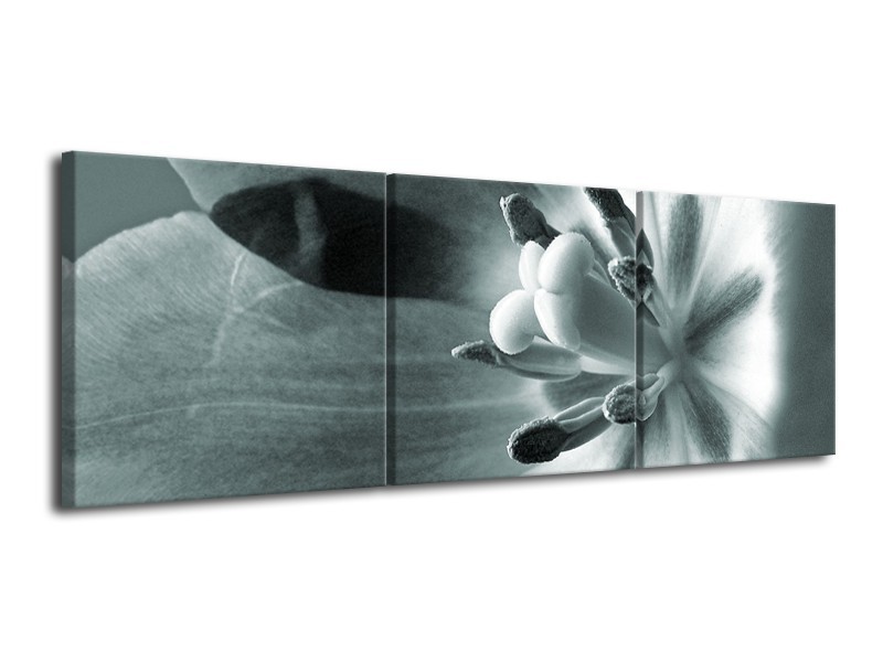 Canvas Schilderij Bloem | Grijs, Groen | 120x40cm 3Luik