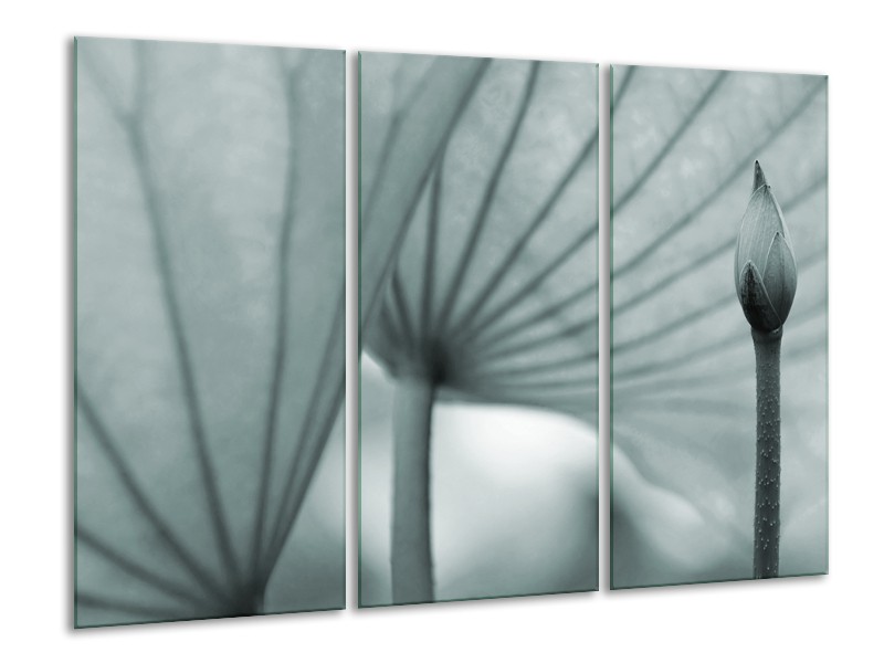 Canvas Schilderij Bloem | Grijs, Groen | 120x80cm 3Luik