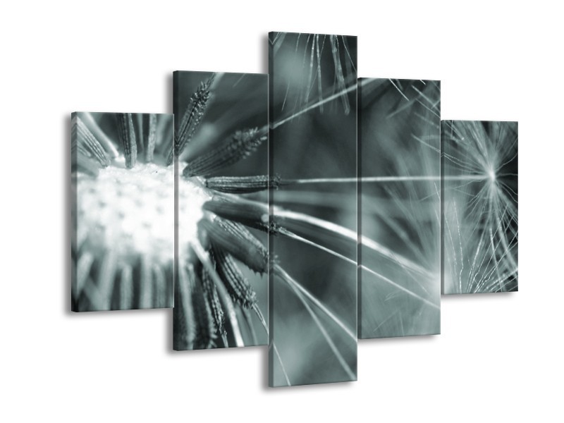 Canvas Schilderij Bloem | Grijs, Groen | 150x105cm 5Luik