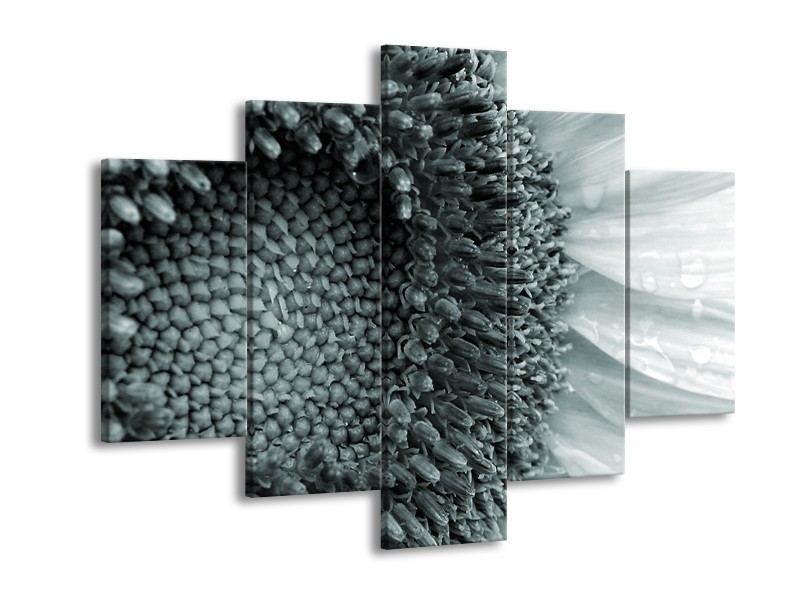 Canvas Schilderij Bloem | Grijs, Groen | 150x105cm 5Luik