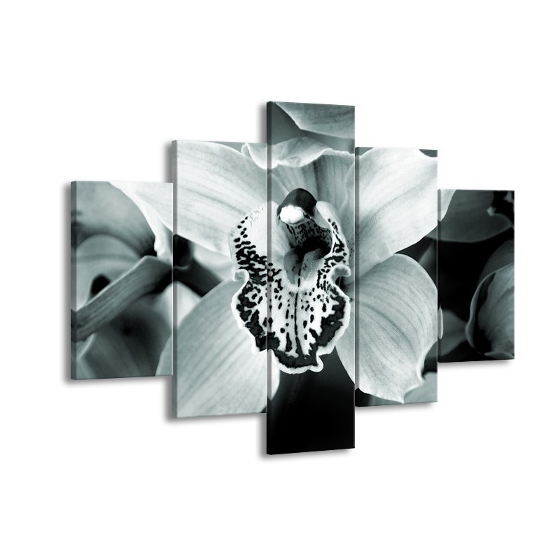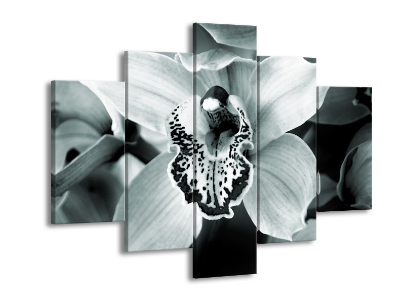 Canvas Schilderij Bloem | Grijs, Groen | 150x105cm 5Luik