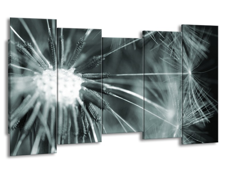 Canvas Schilderij Bloem | Grijs, Groen | 150x80cm 5Luik