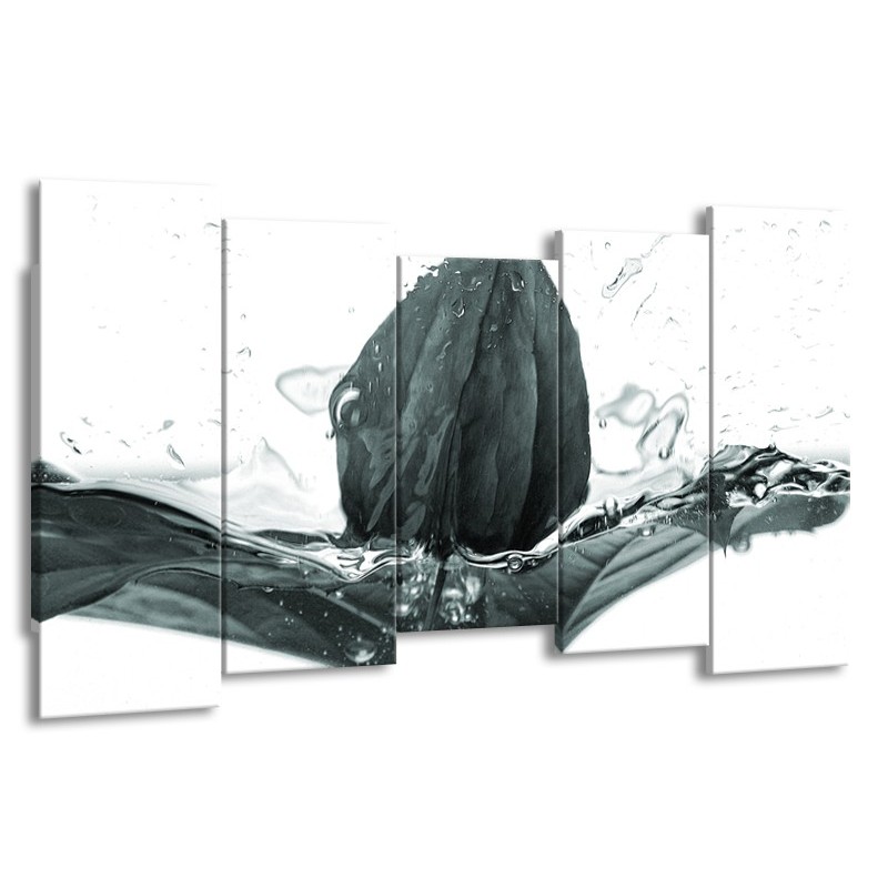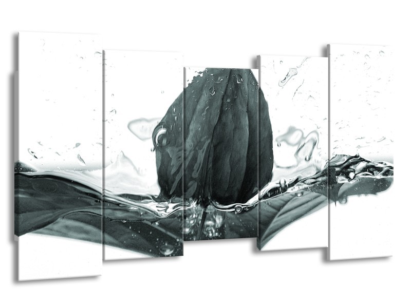 Canvas Schilderij Bloem | Grijs, Groen | 150x80cm 5Luik