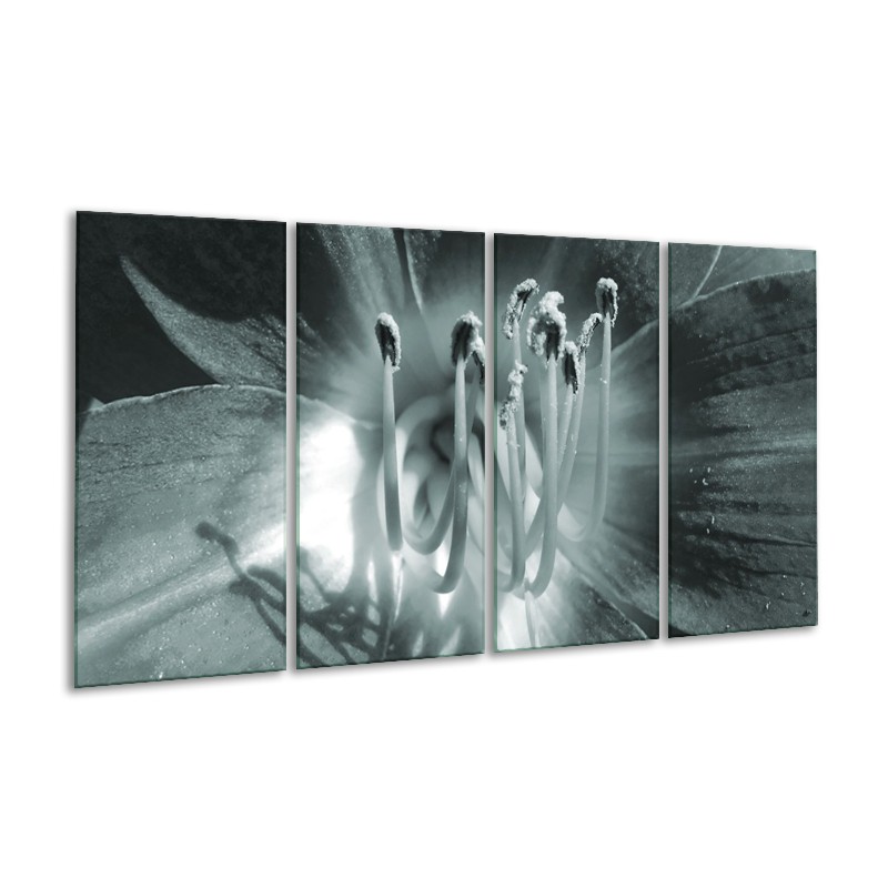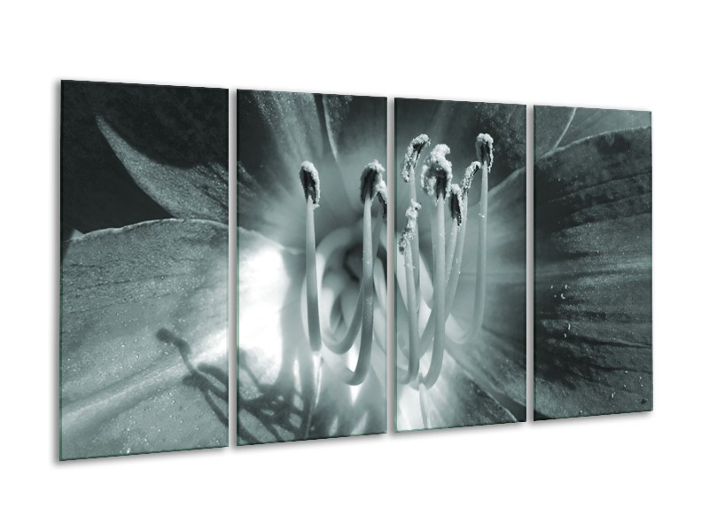 Canvas Schilderij Bloem | Grijs, Groen | 160x80cm 4Luik