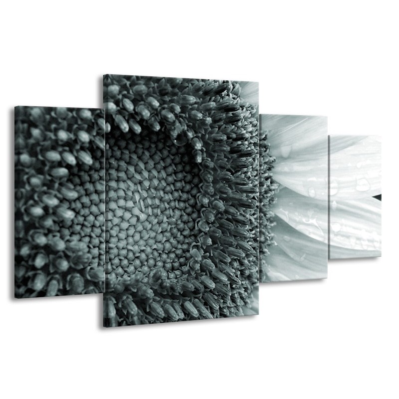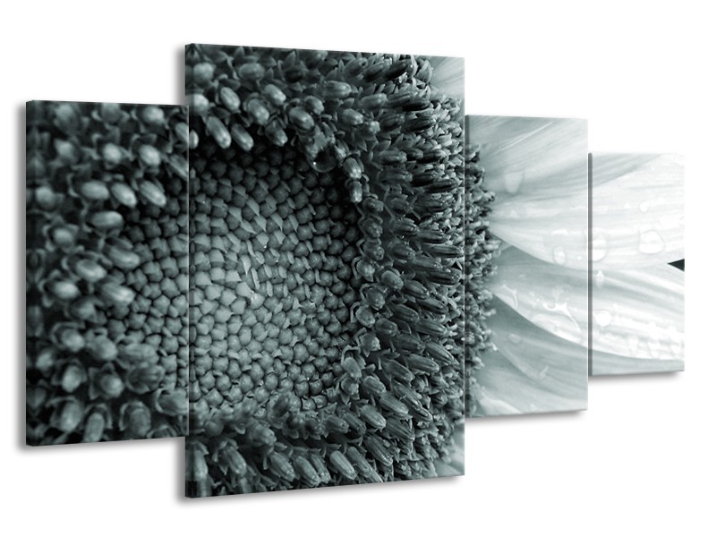 Canvas Schilderij Bloem | Grijs, Groen | 160x90cm 4Luik