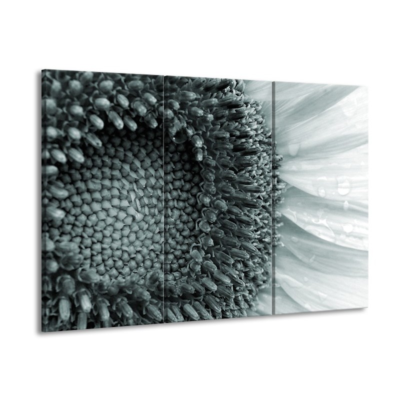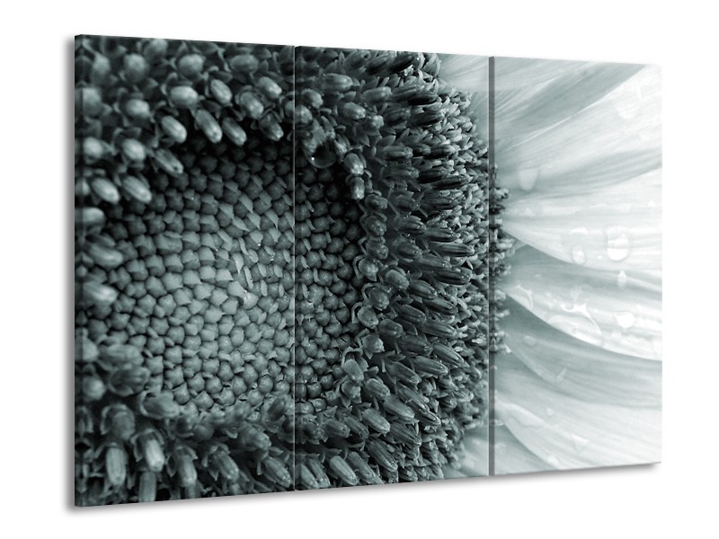 Canvas Schilderij Bloem | Grijs, Groen | 60x90cm 3Luik
