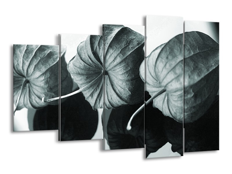 Canvas Schilderij Bloem | Grijs, Groen, Zwart | 150x100cm 5Luik