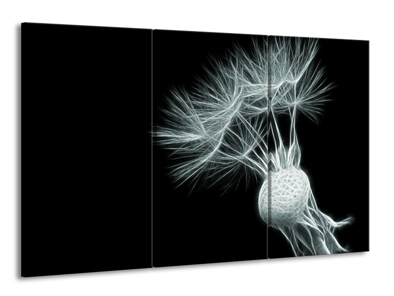 Canvas Schilderij Bloem | Grijs, Groen, Zwart | 165x100cm 3Luik