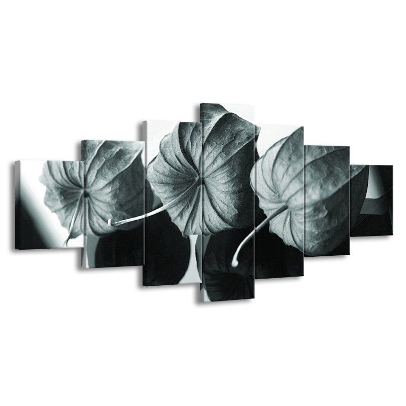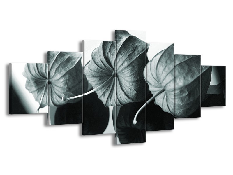 Canvas Schilderij Bloem | Grijs, Groen, Zwart | 210x100cm 7Luik