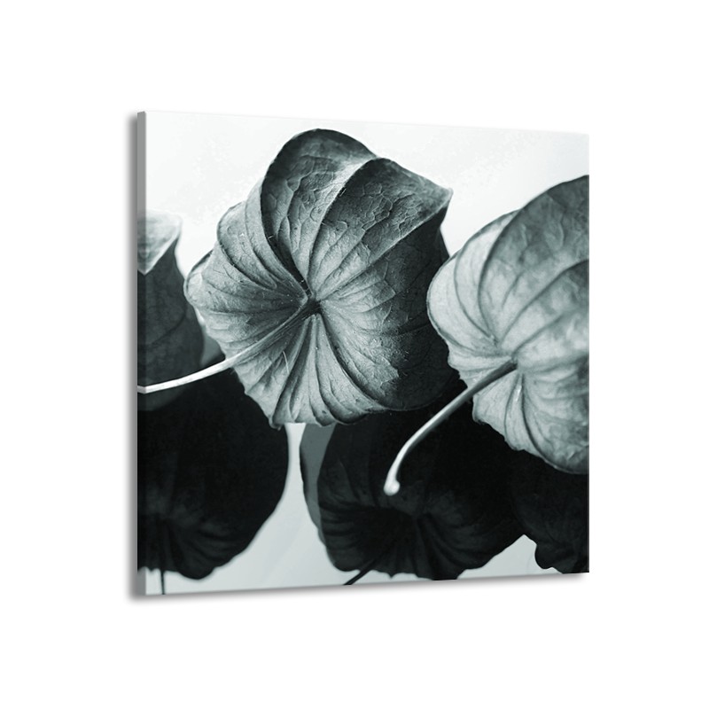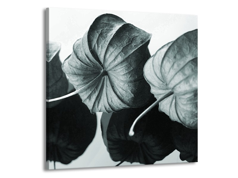 Canvas Schilderij Bloem | Grijs, Groen, Zwart | 50x50cm 1Luik