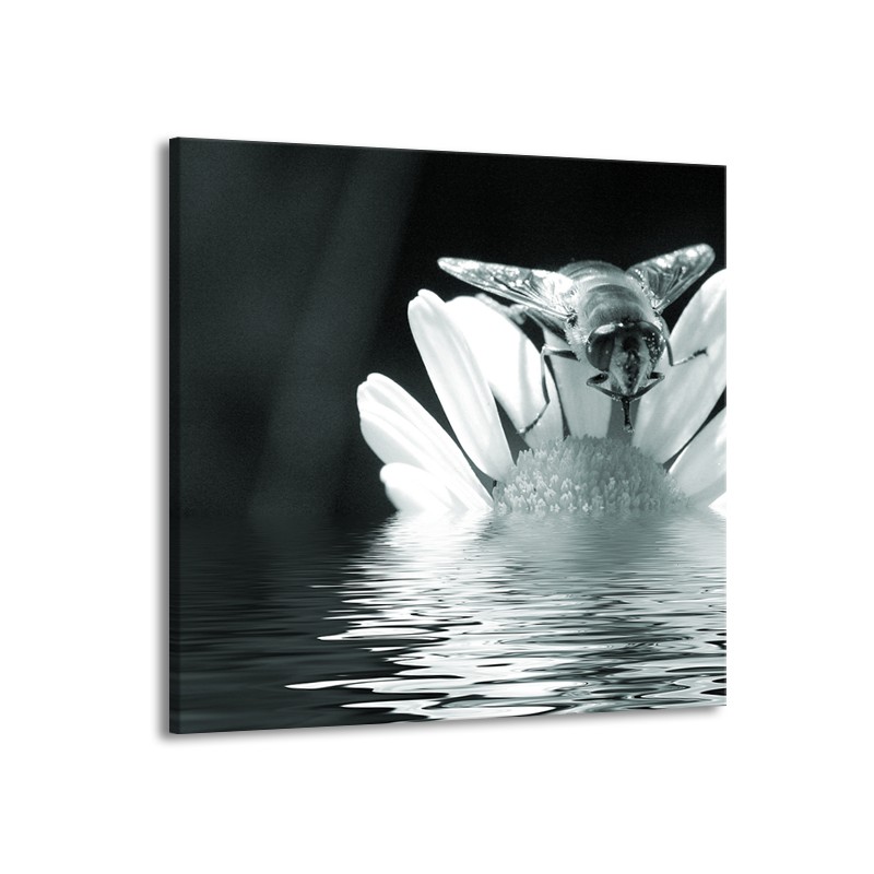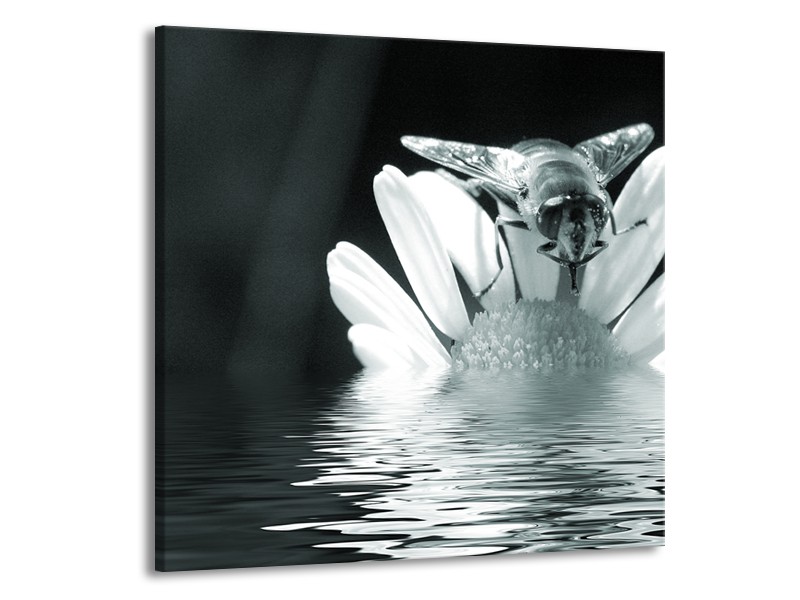 Canvas Schilderij Bloem | Grijs, Groen, Zwart | 70x70cm 1Luik