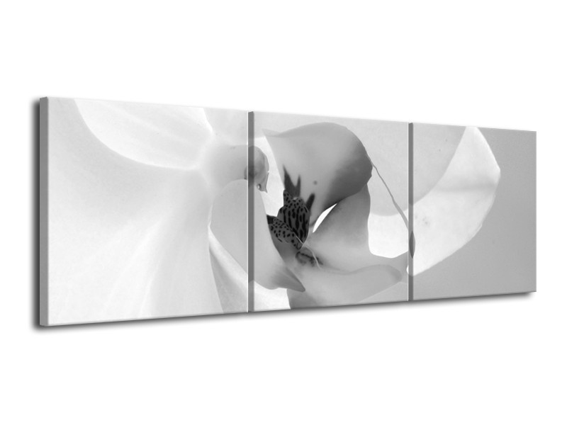 Canvas Schilderij Bloem | Grijs, Wit | 120x40cm 3Luik