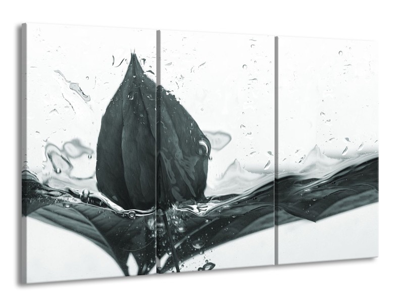 Canvas Schilderij Bloem | Grijs, Wit | 165x100cm 3Luik