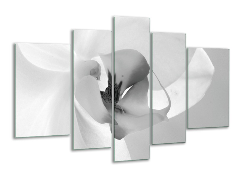 Canvas Schilderij Bloem | Grijs, Wit | 170x100cm 5Luik