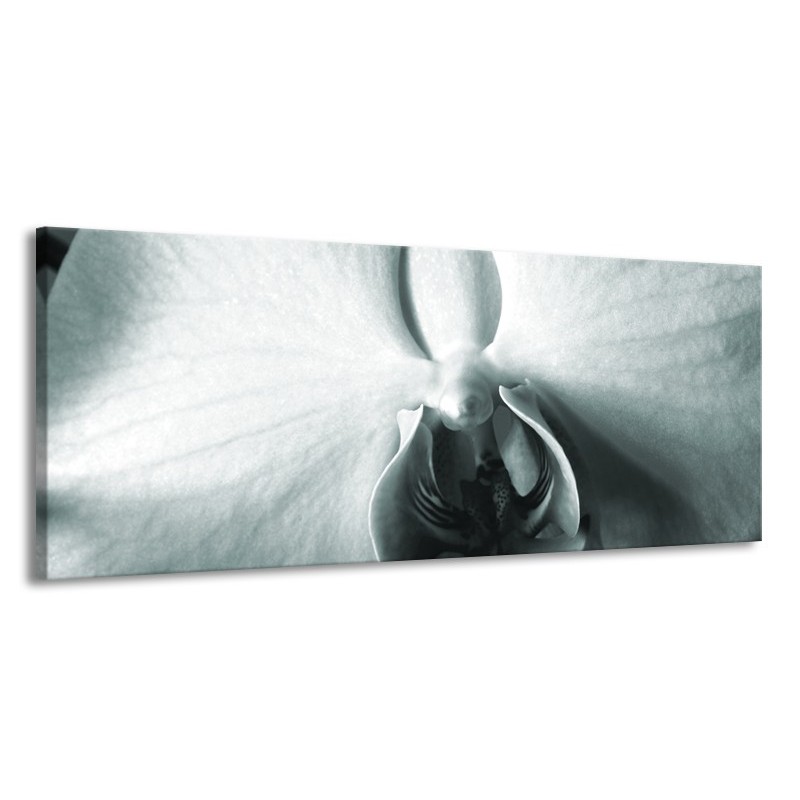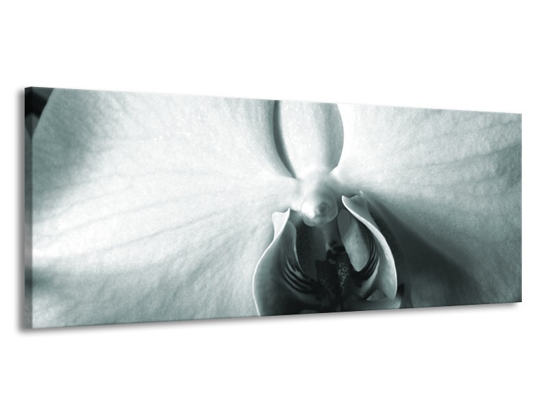 Canvas Schilderij Bloem | Grijs, Wit, Groen | 145x58cm 1Luik