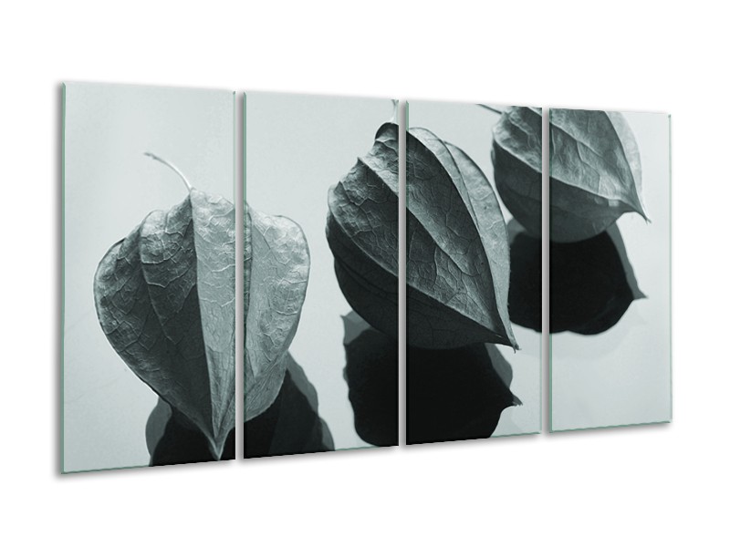 Canvas Schilderij Bloem | Grijs, Wit, Groen | 160x80cm 4Luik