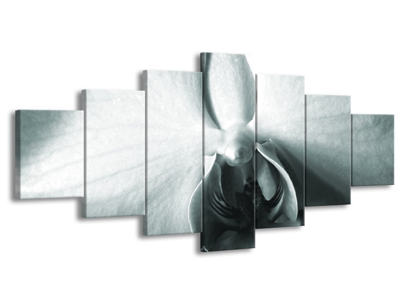 Canvas Schilderij Bloem | Grijs, Wit, Groen | 210x100cm 7Luik