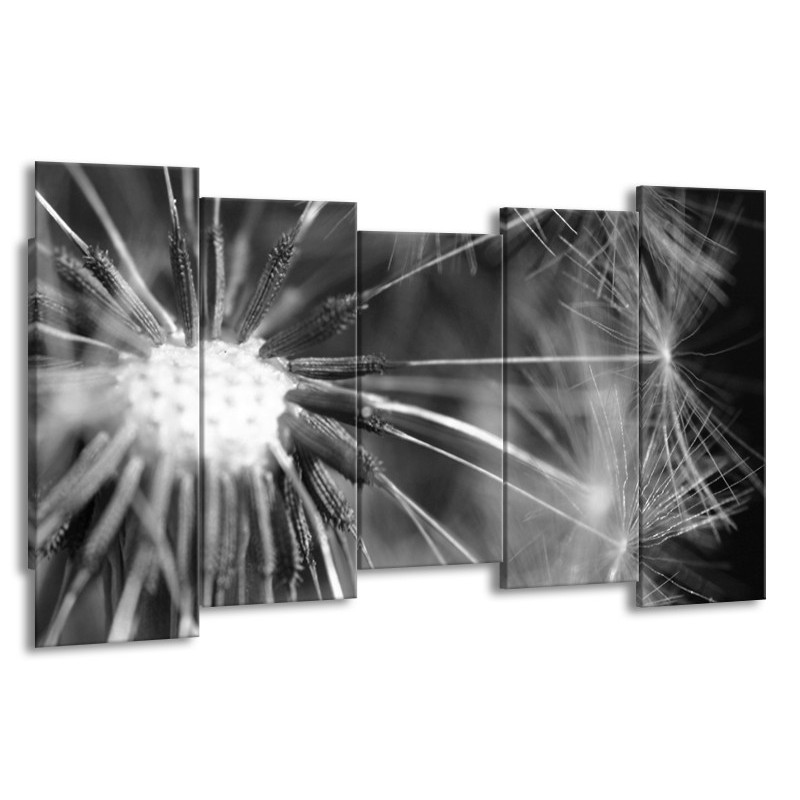 Canvas Schilderij Bloem | Grijs, Zwart | 150x80cm 5Luik