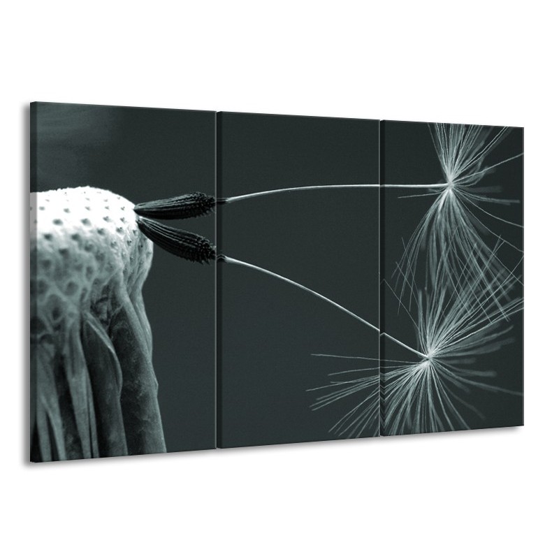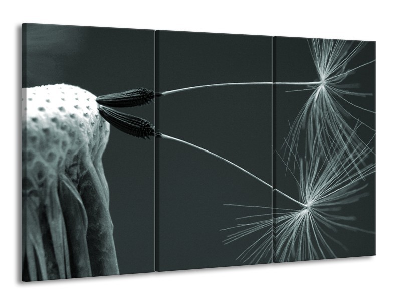 Canvas Schilderij Bloem | Grijs, Zwart, Groen | 165x100cm 3Luik