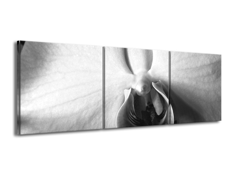Canvas Schilderij Bloem | Grijs, Zwart, Wit | 150x50cm 3Luik