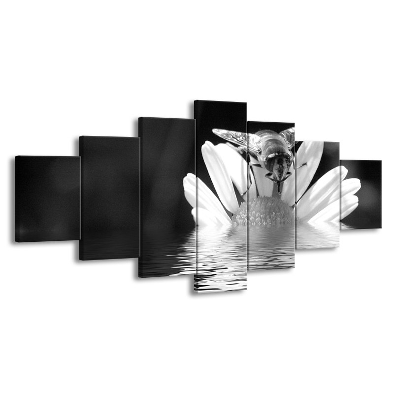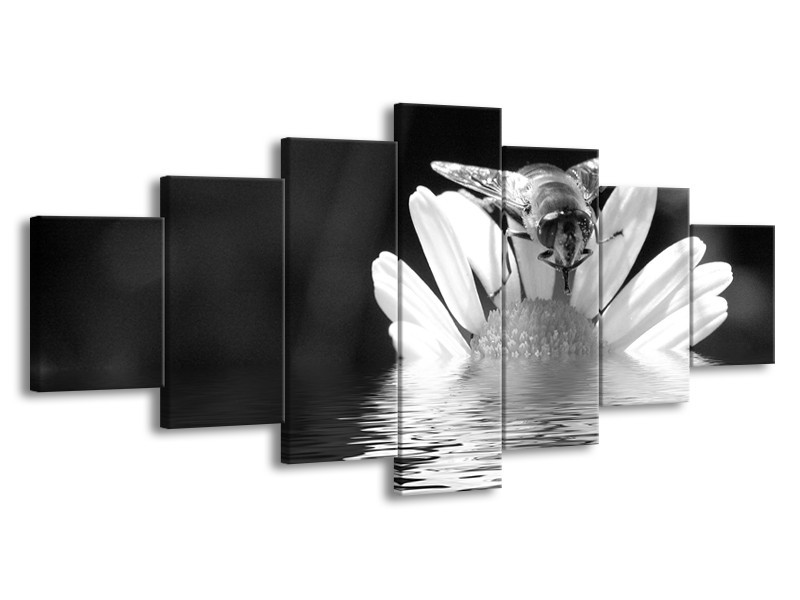 Canvas Schilderij Bloem | Grijs, Zwart, Wit | 210x100cm 7Luik