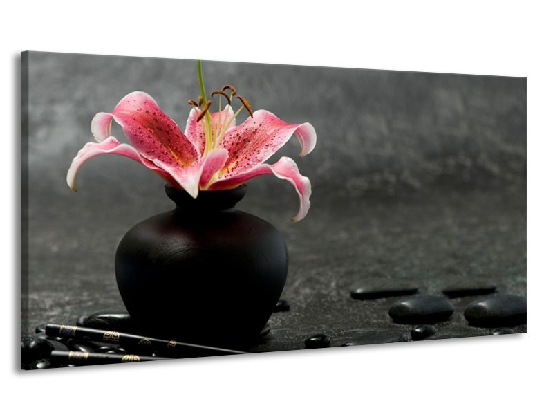 Canvas Schilderij Bloem, Modern | Zwart, Roze, Grijs | 170x90cm 1Luik